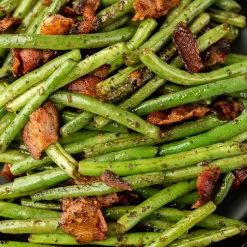 A delectable and rich side dish is green beans with bacon.