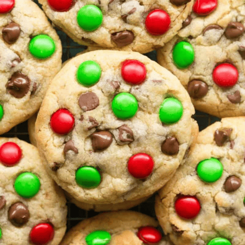 These low-carb Christmas cookies are packed with red and green candy decorations and are extremely straightforward to make.