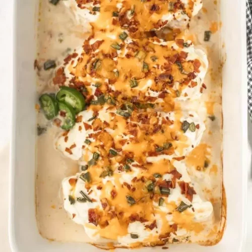 The chicken in this Keto Jalapeño Popper Recipe is bursting with flavor.