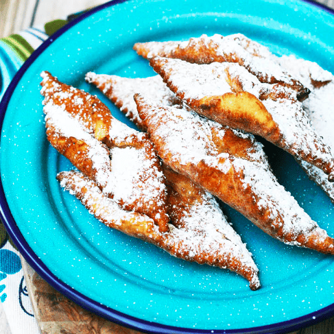 These cookies are poor man cookies. These fried cookies are perfect dusted with powdered sugar. They are cripsy, delicious and easy to make.